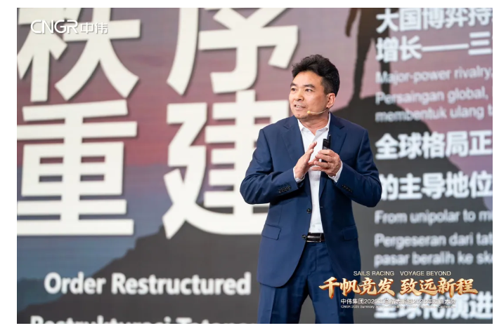 擘画新程,共赴山海。大会最后,中伟集团董事长邓伟明作《开创新纪元:于变局中谋大势 在重构中开新局》的年度主题演讲,他深度解析了百年未有之大变局中世界秩序变化带来的逻辑、风险重构以及背后的价值重估,并围绕“聚焦材料赛道、锁定关键资源、掌握核心技术、激活关键要素”四大维度,复盘过去、立足当下、展望未来,全面总结集团发展成果并擘画中伟未来发展航向。