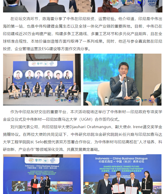 中伟新材亮相印尼—中国商务论坛,与印尼政府、高校共话合作新篇
