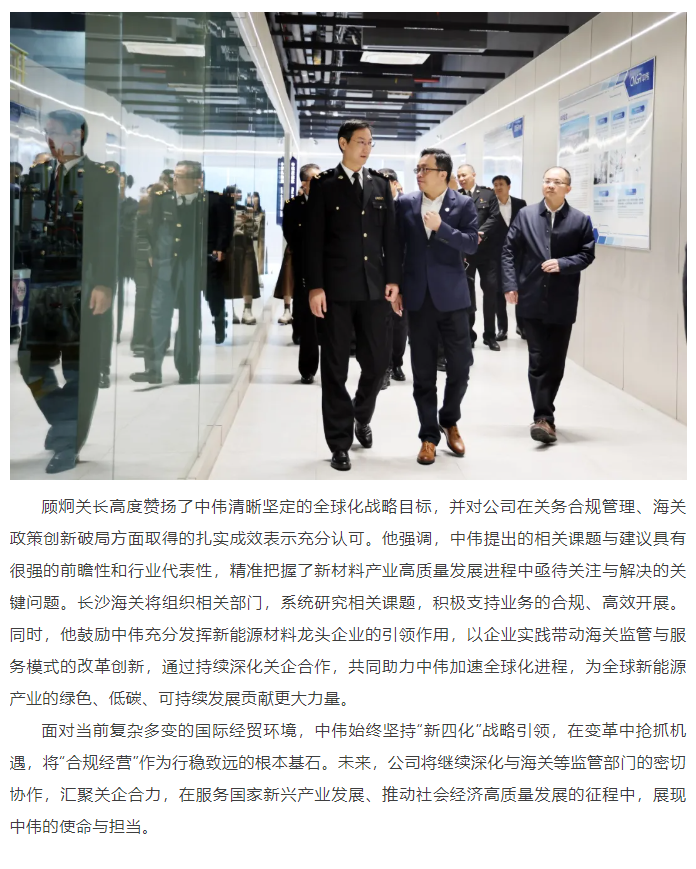 全球化征途上的“关”键力量!长沙海关关长顾炯调研中伟